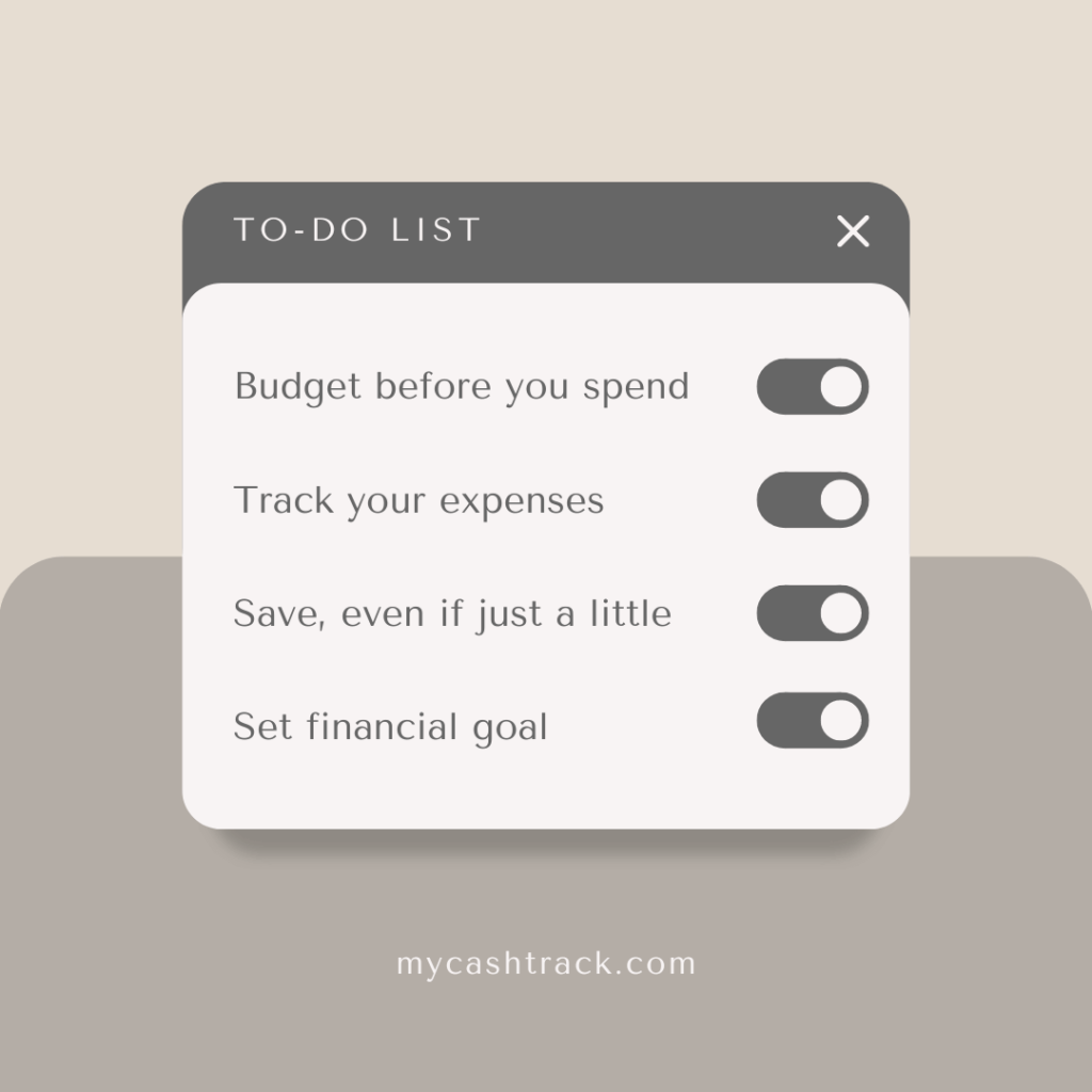 Remember that personal finance is a journey, and it’s important to be patient and disciplined. By making small changes to your spending and saving habits, you can work towards financial stability and security. To achieve all of the above :
